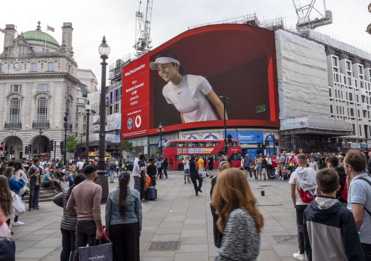 Telecom giant Vodafone has unveiled a 3D Piccadilly Lights activation in partnership with Wimbledon, featuring a digital Emma Raducanu avatar.