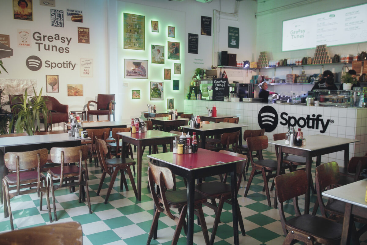 Music streaming service Spotify has opened a pop-up ‘greasy spoon’ cafe in Shoreditch, cleverly named ‘Greasy Tunes’ in the hopes of bringing fans and creators closer together.
