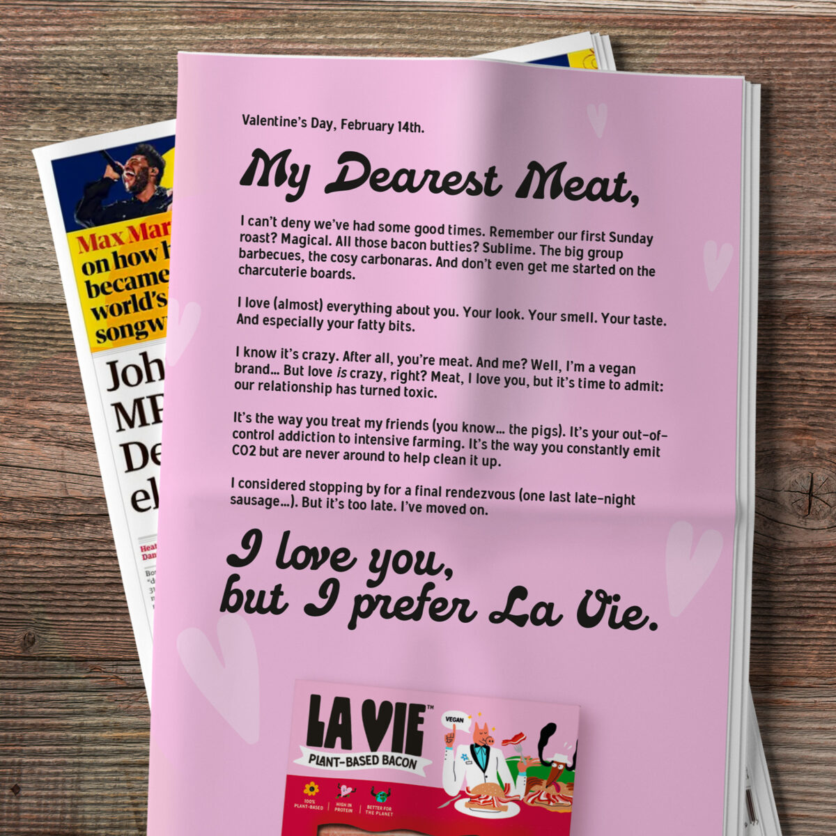 Spearheaded by a quirky open letter, La Vie declares its undying love for meat – but something just isn’t working, whether that’s how the industry treats pigs, its tendency for intensive farming or its considerable contribution to global warming, the relationship has clearly turned toxic.