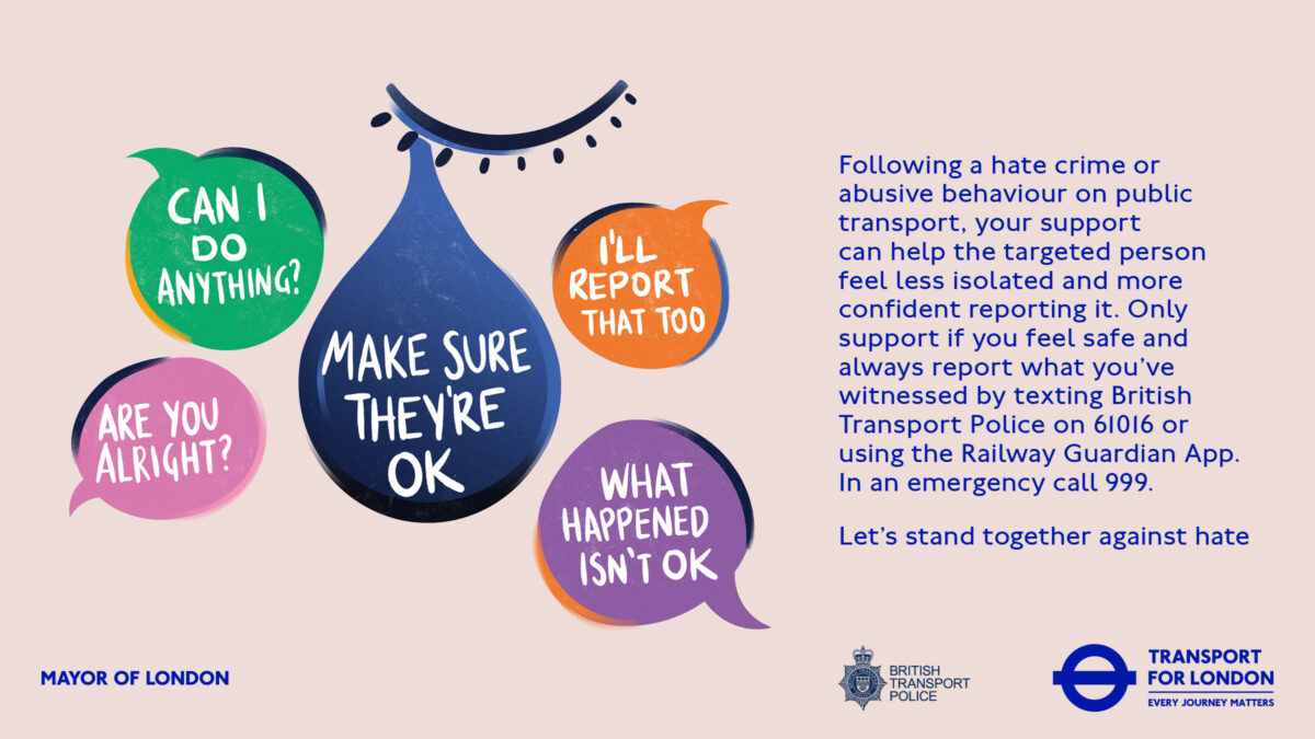 TfL has today (23 March) launched ‘Stands against Hate – Bystander Intervention’, its latest campaign to tackle the ongoing issues surrounding hate crime and abuse across its network.