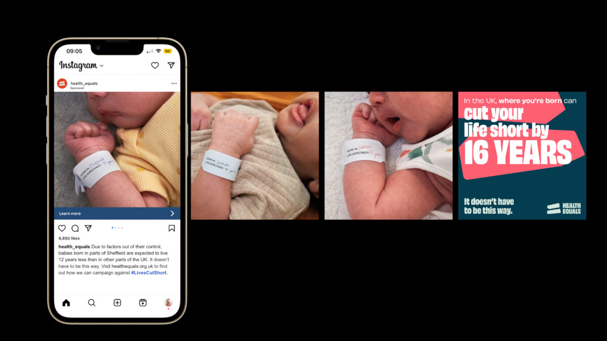 Don’t Panic creative, Georgia Stephenson added: “What better way to demonstrate health inequality than with a newborn baby? Someone who has made no decisions about their health at all but simply because of the area that they’re born in, is likely to live up to 16 years less than if they were born elsewhere in the UK. The campaign is heartbreaking because the reality is.”