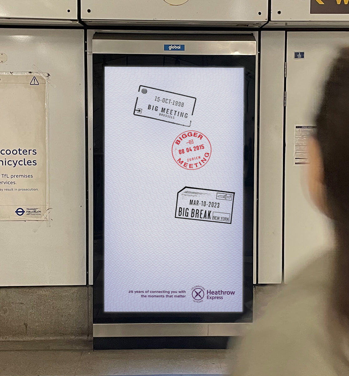 Heathrow Express is set to mark its 25th anniversary with a new out-of-home campaign featuring a series of bespoke passport stamps across its network.