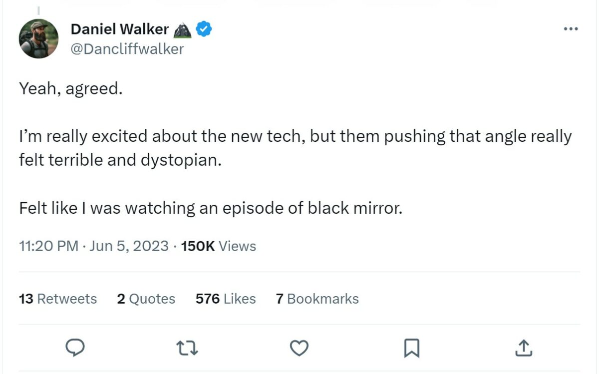 Multiple users pointed out the resemblance to dark dystopian TV shows including Black Mirror, a speculative fiction in which many episodes feature similar AR type technology to comment on contemporary social issues.