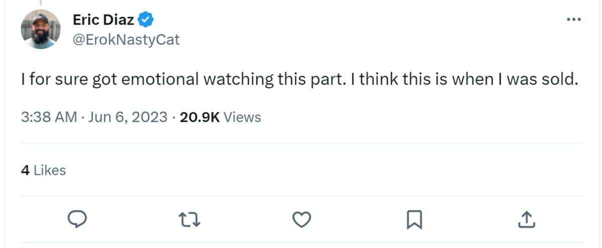 The tweet, which since its publication yesterday has received over 146 thousand likes, was captioned, ‘I gotta admit, this part made me a bit sad’.