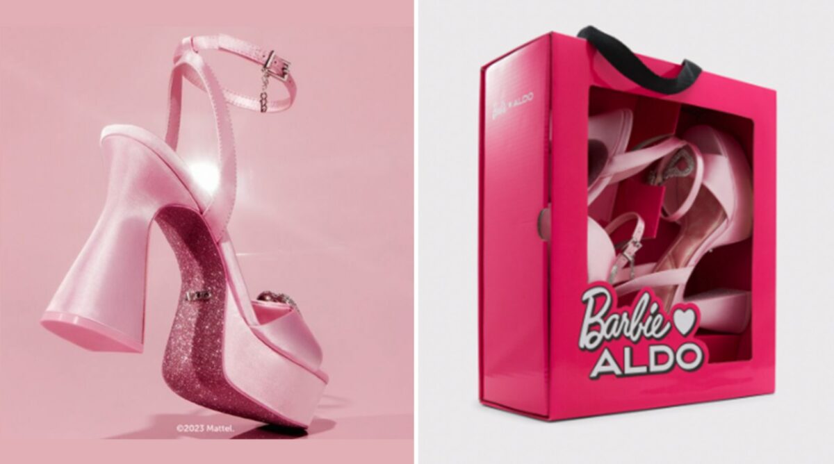 Aldo has gone one further however, releasing sparkly bags, glamorous strappy sandals and embellished trainers that come packaged in classic Barbie-inspired ‘display-case’ packaging, adding an extra touch of whimsy and a nostalgic nod to the original dolls.