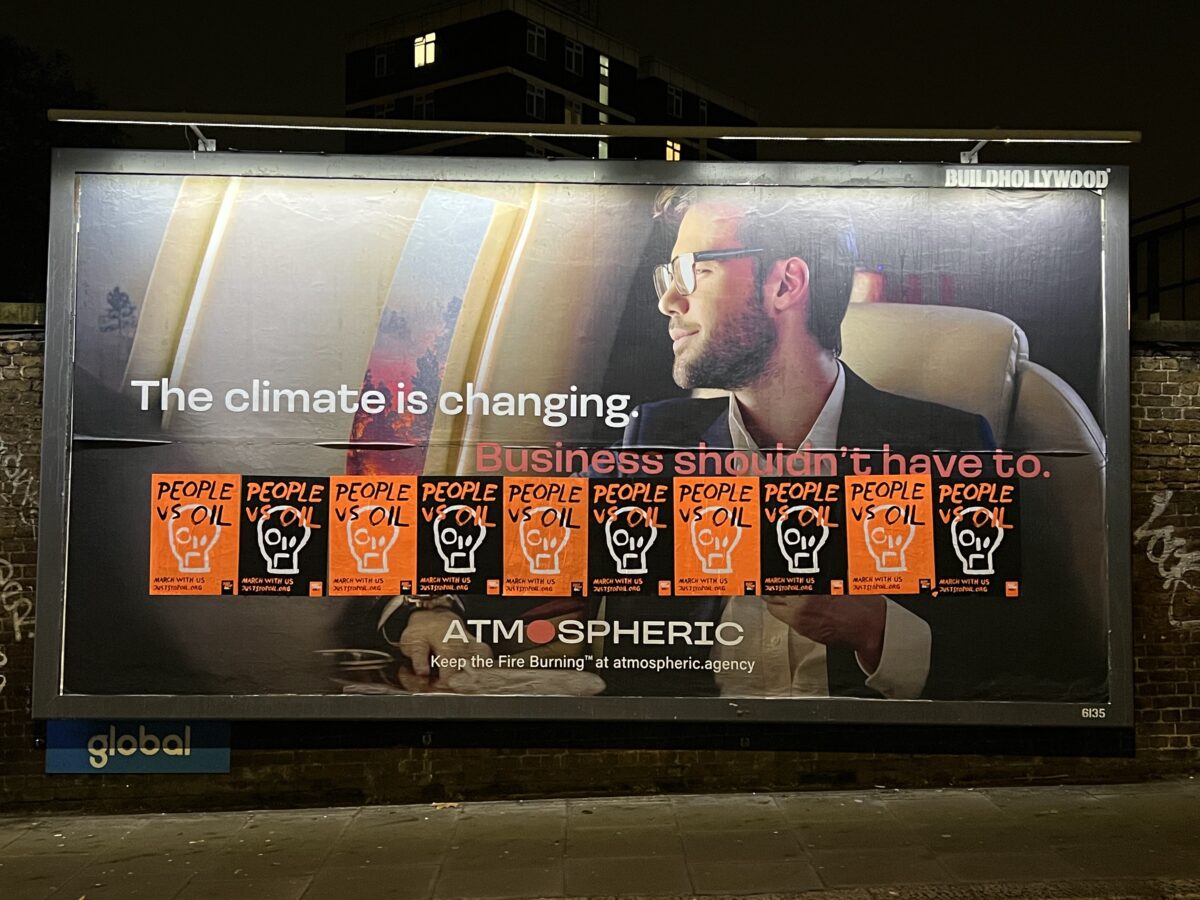 The campaigners have launched a spoof ad agency called Atmospheric, which launched with a statement billboard which reads: ‘The climate is changing. Business shouldn’t have to’.