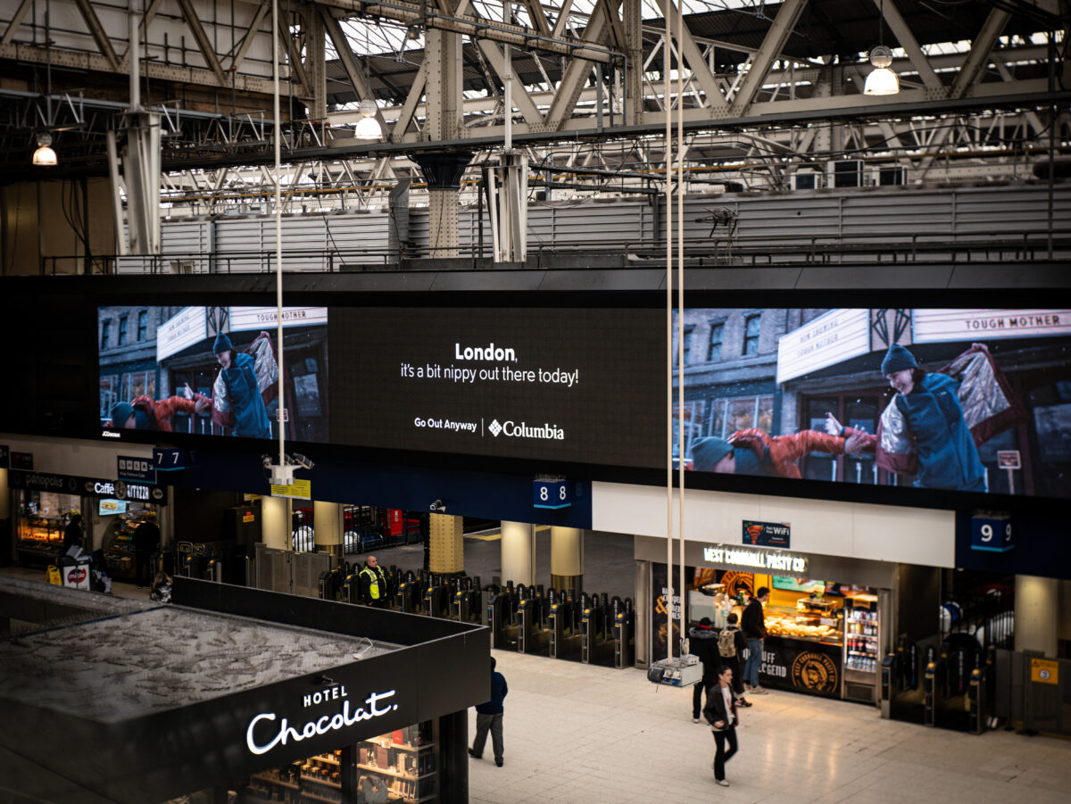 “Go out anyway”, says the latest campaign by outerwear brand Columbia Sportswear, which uses real-time weather data to provide personalised DOOH ads which lean into a favourite British topic, the unpredictability of the weather.