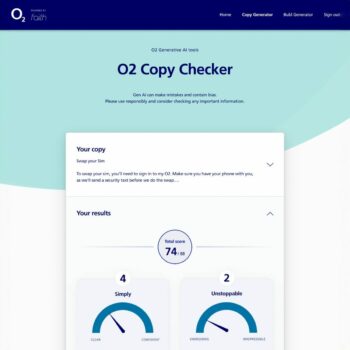 Meanwhile, the second tool – called ‘The Copy Checker’ – allows O2 copywriters to paste in text in order to receive detailed feedback and suggestions for helping maintaining tone-of-voice.