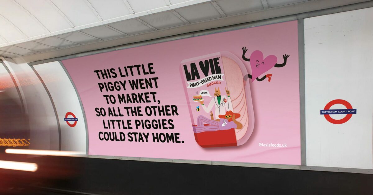 French plant-based food brand La Vie is turning London’s streets pink with a vibrant out-of-home campaign that celebrates its meatless ham alternative.