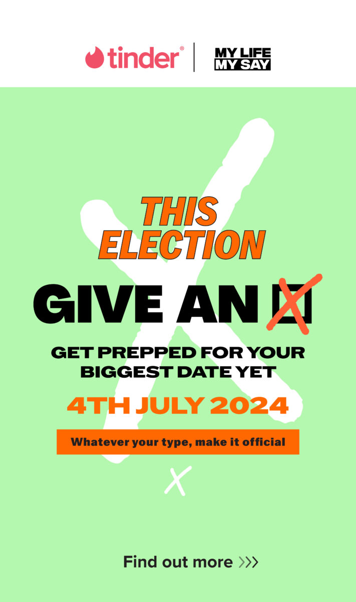 ‘Give an X’ will look to help young singles stay informed and politically engaged ahead of polling day on 4 July, with an in-app ‘Swipe Card’ directing users to digestible, impartial guidance to help them make an informed decision in the election.