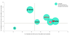 In the wake of X’s much-discussed difficulties, marketers have started placing their ads elsewhere. This shift of activity has seen Amazon and TikTok emerging as consumers’ favourite ad platforms, while YouTube is top with marketers and Netflix is – just about – keeping everyone happy.