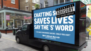 Created in partnership with integrated advertising agency Media Bounty, ‘Say the S Word’ encourages people to ask potentially life-saving questions and speak to a friend if they think they may be having suicidal thoughts.