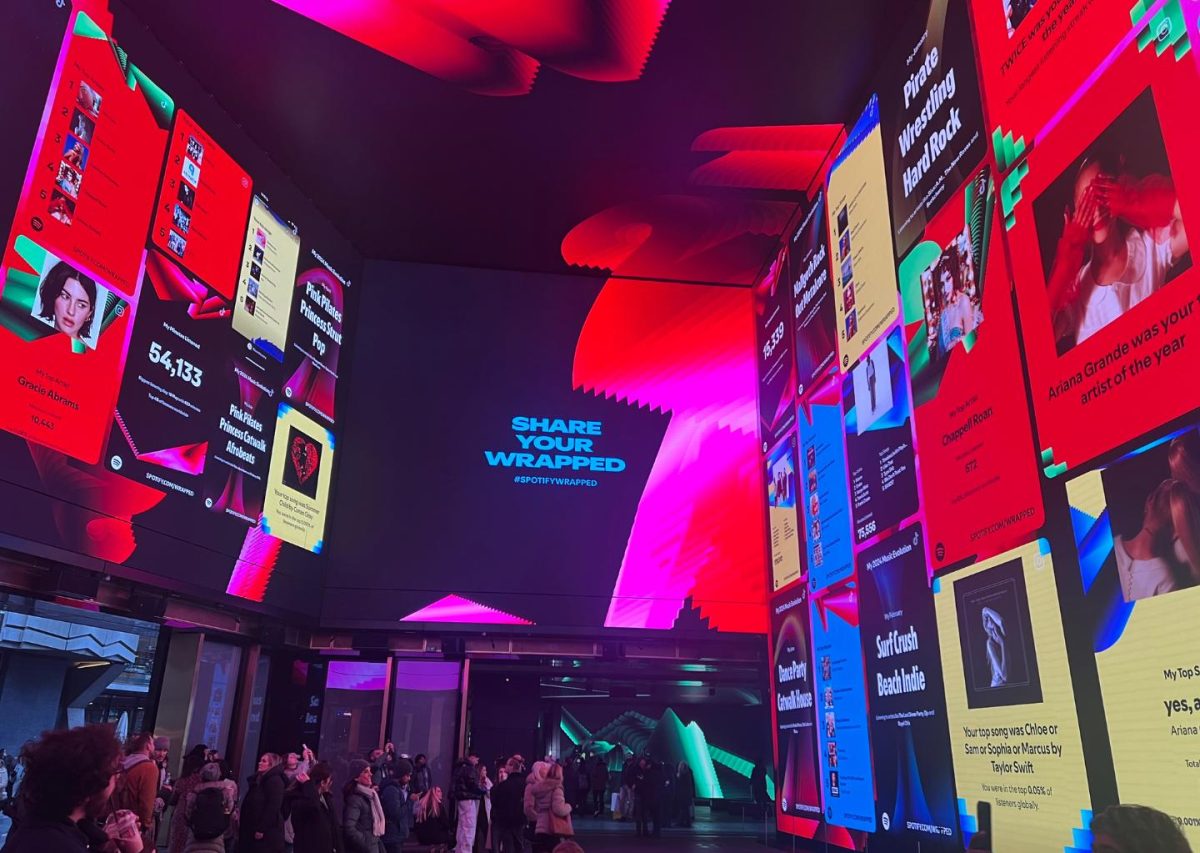 Music streaming platform Spotify is showcasing London’s listening habits with an immersive ‘Wrapped’ campaign at Outernet on Tottenham Court Road.