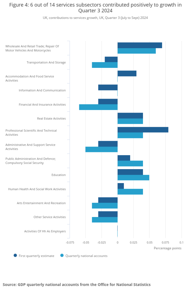 Non-consumer-facing services showed no growth in quarter 3, while consumer-facing services increased by 0.1%, down from the original estimate of 0.5%.
