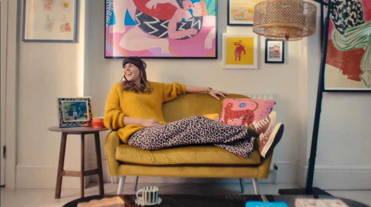 Devised by creative studio Ourselves, the spot “Less Bland, More You” features a woman surveying her drab and dismal home. She uses the platform to liven it up, purchasing pictures, rugs, curtains, and cushions.