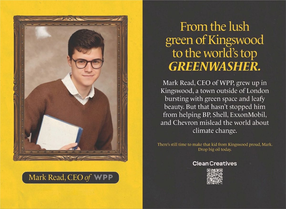 “We wanted to use bold, unusual creative and placement to show that working with fossil fuels is not just a betrayal of the planet – it’s a betrayal of the guiding ideals of the creative industry and its employees,” Clean Creatives executive director Duncan Meisel said.