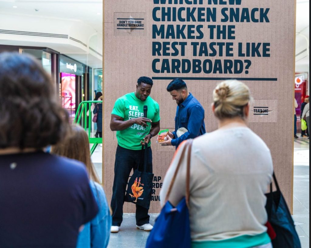 Snack brand Peperami unveiled a huge cardboard installation at The Glades shopping centre in Bromley, London, to celebrate the release of its new Chicken Tikka Skewers.