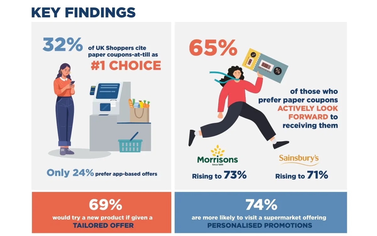 Contrary to common assumptions, these preferences are not driven by older shoppers. Gen Z respondents now show a higher preference for paper coupons at the till (30 per cent) than app-based offers (23 per cent), a notable rise since 2022.